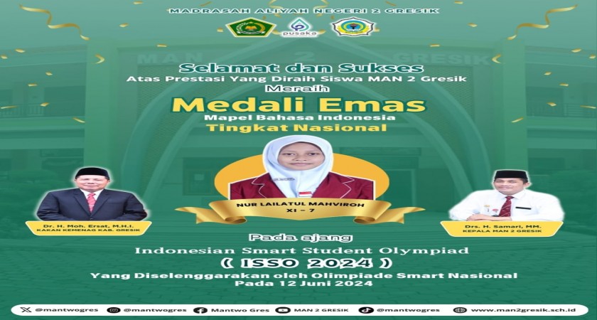 Dengan prestasi ini, MAN 2 Gresik semakin menunjukkan kualitas pendidikan yang unggul dan mampu bersaing di tingkat nasional. Semoga keberhasilan Nur Lailatul Mahviroh menjadi awal dari berbagai prestasi lainnya di masa depan, baik bagi dirinya maupun seluruh siswa MAN 2 Gresik. (humas/epa)