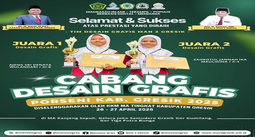 Dalam cabang lomba Desain Grafis, dua siswa MAN 2 Gresik berhasil memborong gelar juara: