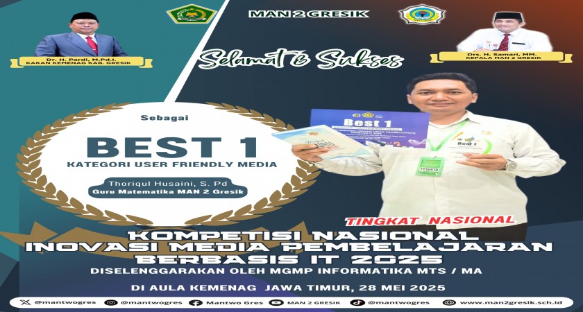 Prestasi ini tidak hanya membanggakan MAN 2 Gresik, tetapi juga menunjukkan bahwa kualitas pendidikan di madrasah terus berkembang dengan sentuhan teknologi dan inovasi.